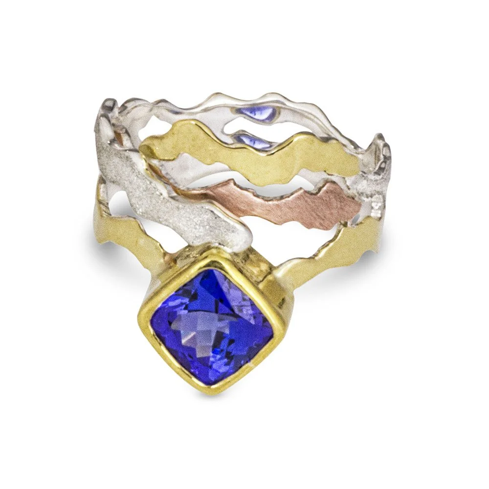 A client recently brought me a large, princess-cut tanzanite that she wanted to have incorporated into a custom ring. We discussed the design beforehand, and I checked in with her through the process so she could decide on key design elements:
